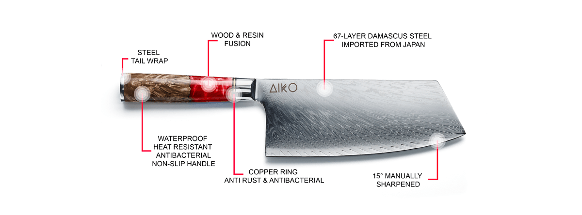 The Aiko Red (あいこ, アイコ) Damascus Series Knives: