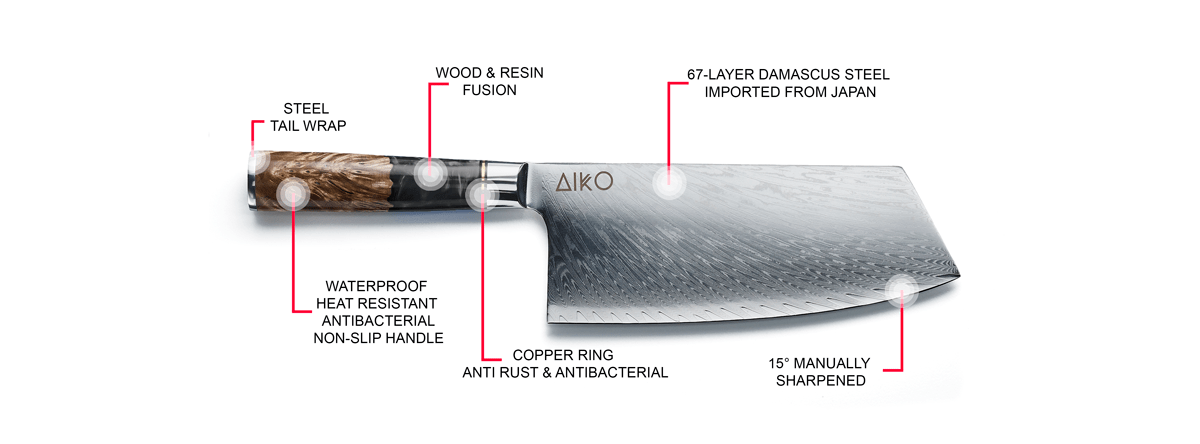 - Núcleo de acero japonés VG10 forjado de precisión para un excelente rendimiento y retención de borde.