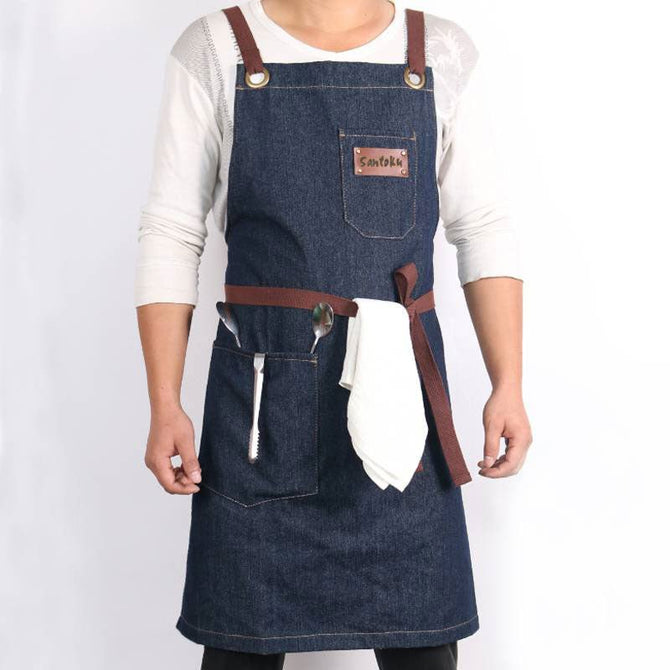 - Construido para soportar las cocinas más duras y los esfuerzos de cocción. Denim hecho a mano, que es suave y transpirable, sin embargo fuerte y flexible.