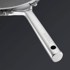 The one pan you’ll reach for every day. The Hive Hybrid™ 26 cm Frying Pan & Lid Set combines Santoku’s timeless craftsmanship with advanced 30D stainless steel engineering for the perfect balance of power, precision, and control. It heats fast, sears beautifully, and releases effortlessly — all PTFE, PFOA & PFAS-free, with no harsh coatings or chemicals. Use any utensil — metal, wood, or silicone — with total confidence.
