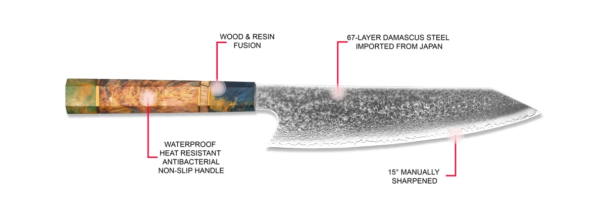 - Cuchillas forjadas de precisión con núcleo de acero japonés VG10 para un excelente rendimiento y durabilidad.