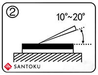 Coloque la piedra de afilado en la plataforma y el cuchillo debe estar en un ángulo de 10 ~ 30 grados.